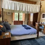 Guests may enjoy media amenities like a flat-screen TV with satellite channels, along with air conditioning. The interior elements include a writing desk, as well as a fireplace.